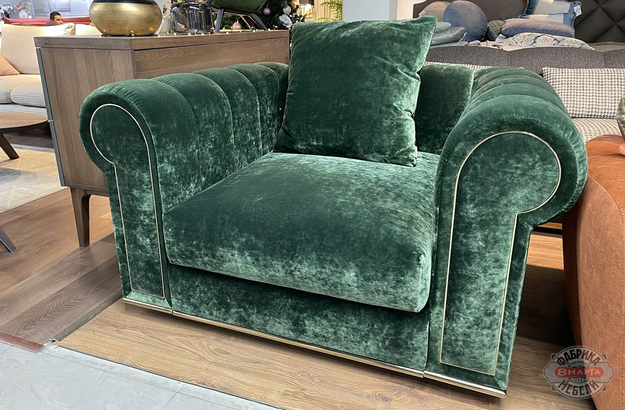 Пышные формы креслу «Олдвуд» задают обвороты фигурных локотников и спинки с акцентными линейными утяжками. Его локотники и спинка выполнены в стиле “честерфилд” - они находятся на одной высоте и создают очень уютное внутреннее пространство. Благодаря их мягкости и глубокому сиденью «Олдвуд» становится не только шикарным предметом интерьера, но и невероятно приятным и удобным местом для отдыха.
