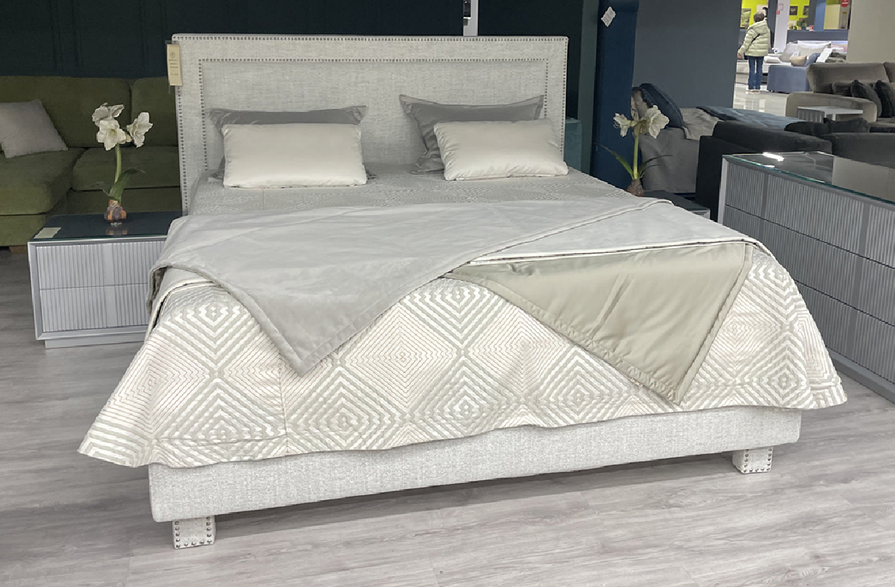 Мягкая, уютная кровать «Дженифер» подходит для ценителей традиционного стиля. Особый шарм этой модели придают высокая фигурная спинка с отделкой декоративными гвоздиками, а также эксклюзивная шелковистая ткань, используемая для обтяжки царги, спинки и ножек изделия.
